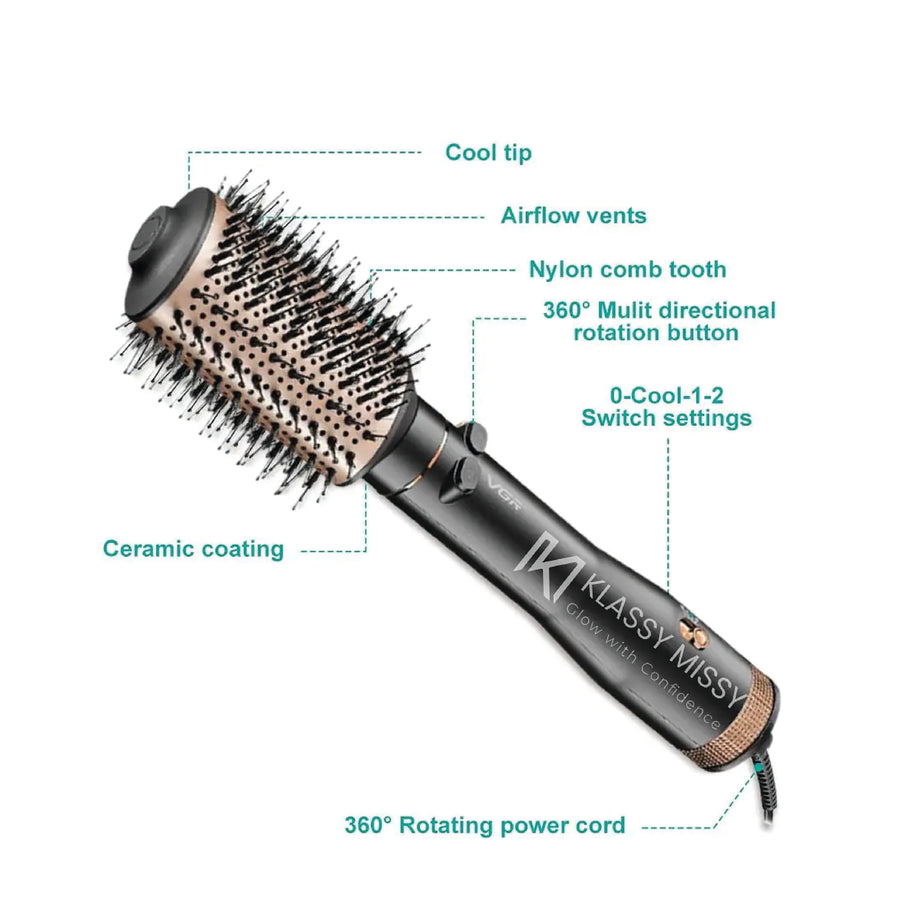 Hair Brush, Hair dryer800W Professional Rotating Hot Air Styler Comb with 3 Air Flow Modes V-494 – Black